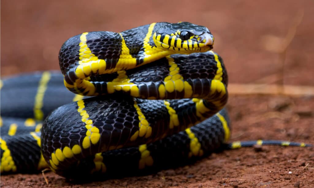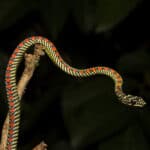The Boiga genus includes many striking snakes with vivid coloring. These snakes are members of the Colubridae family, which is the largest of all snake families. Although they are classed as mildly venomous, itโs smart to avoid their bites, which can be painful.