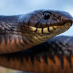 A. taylori, Taylor’s cantil or the ornate cantil, is endemic to northeastern Mexico. Like A. bilineatus, it has a robust body but is smaller and grows to about 35 inches in length. It has notable stripes on its head and black or grayish brown bands over its body with yellow, orange or white accents. Males can be told from females in that they’re much darker. It is rare and considered threatened even though it lives in a variety of habitats, including forests, grasslands and thorn scrub.