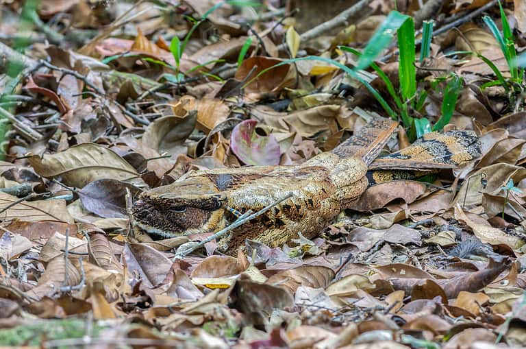 Nightjars are one of the few birds that donโt build a nest structure. Instead, they lay their eggs directly on the leaf-covered ground. They use their unique coloring to camouflage it and their young.