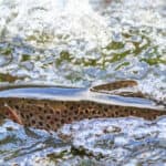 Salmon make a colossal effort to swim upstream to their spawning site, where their eggs will be laid and fertilized.