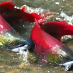 - Sockeye Salmon: Sporting a bright red coloration, the sockeye is endemic to the Northern Pacific Ocean.