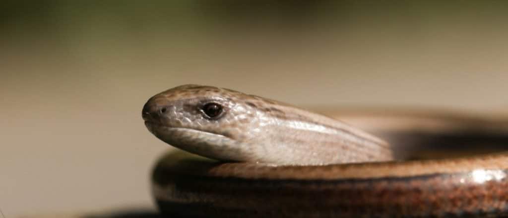 The slow worm is a greyish brown lizard, even though they are often mistaken for snakes.