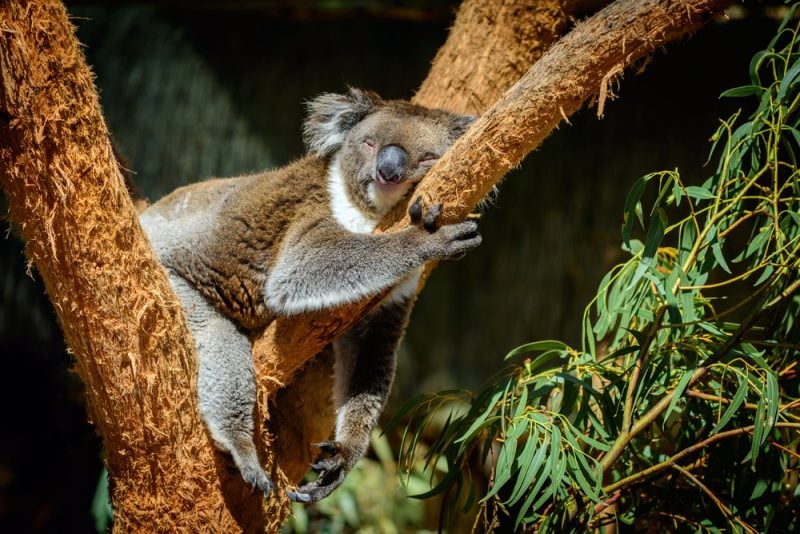 Koalas, renowned for being tree-dwelling, leaf-munching marsupials, can be found primarily in eucalyptus forests in the eastern and southeastern coasts of Australia. Koalas spend most of their time sleeping, clinging to branches high in trees where they are safe from predators, eating leaves, and taking care of their babies, called joeys. Joeys spend the first six months of their lives in their mother’s pouches, where they continue to develop and get nutrients.