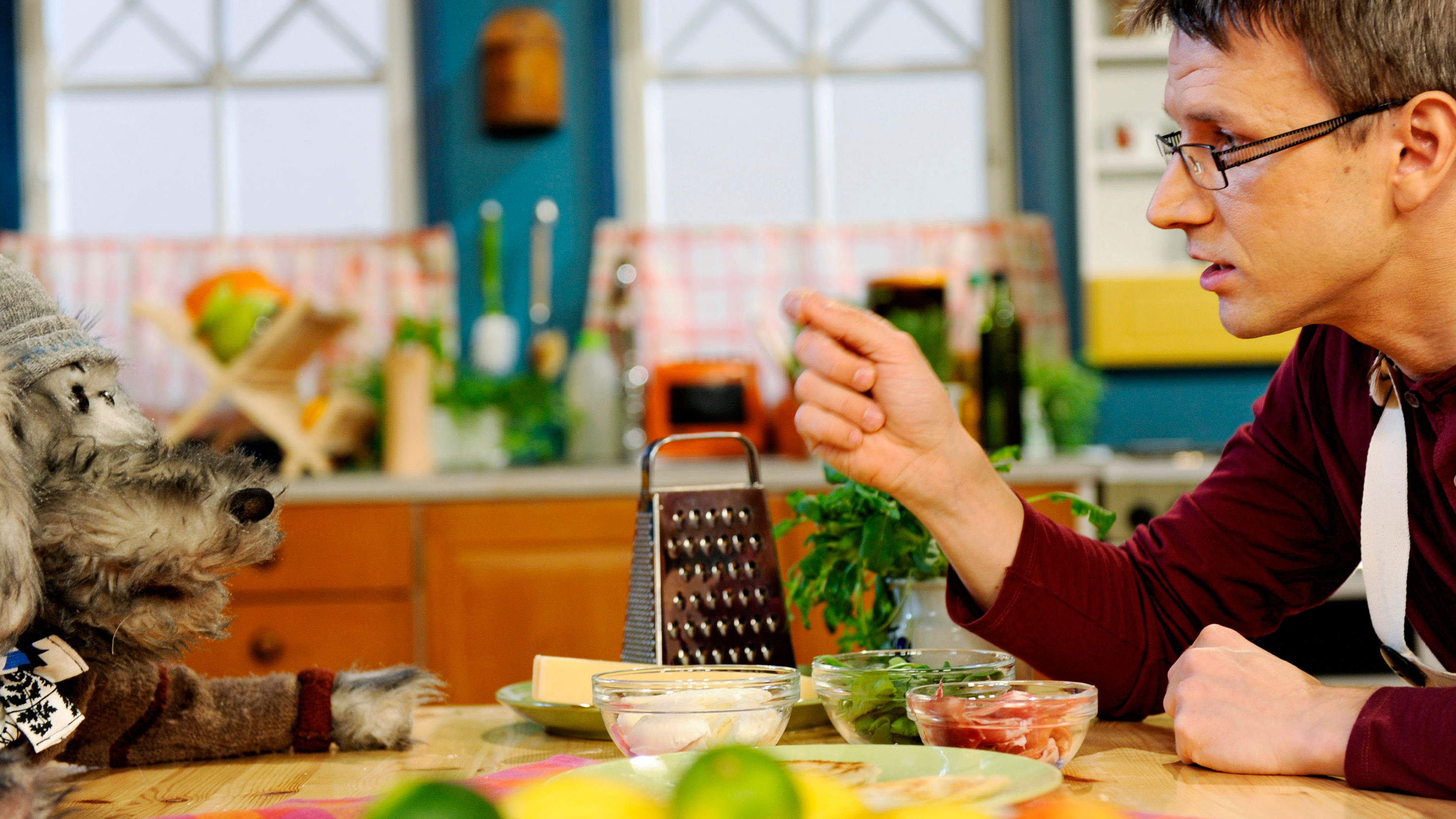 Ramin ja Karvakuonojen Rikun yhteiskeittiössä kaverukset tutustuvat erilaisiin ruoka-aineisiin ja keittiöhommiin.
