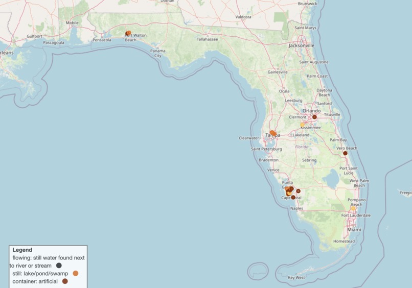 We built a map that models mosquito habitat throughout Florida and displays what type of water source they are living in.