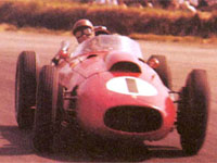 Ferrari followed that up by re-signing Hawthorn, who had been languishing over at BRM, pairing the two British mates as team mates when Fangio left for Maserati. However, Hawthorn, Collins, Musso, Trintignant and their occasional team mates, such as the young Wolfgang von Trips, suffered as their ageing Lancia-Ferrari cars couldn�t keep up with the revived 250Fs, while the Vanwalls were also starting to make an impression. The Ferrari drivers were left picking up the crumbs that Fangio and Moss left behind and were defenseless against the Maestro�s brilliant comeback drive at the N�rburgring. While he was generally out of luck or off the pace in Championship events, Peter did score some wins that season, taking victory in the local F1 events at Syracuse and Naples. Although Musso and Hawthorn both outran him in the World Championship these two wins (against Musso�s sole win at the non-championship Reims GP) made him the most successful Ferrari driver in a season that was best forgotten quickly.