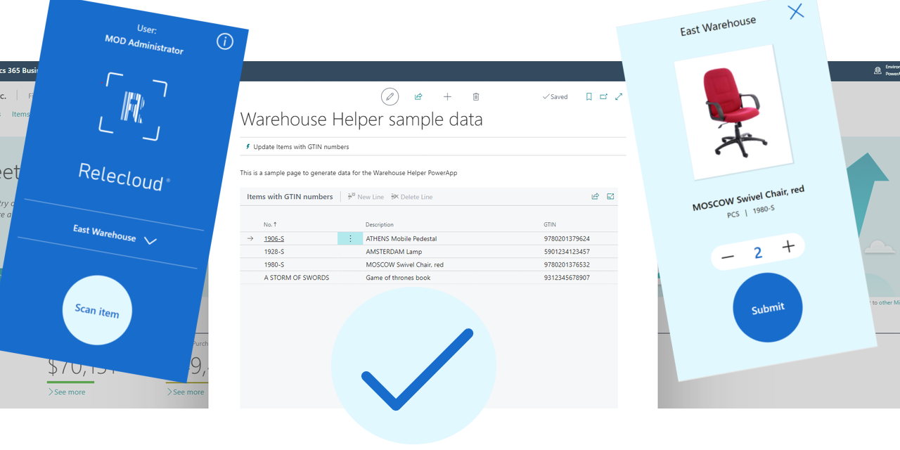The Warehouse Helper sample consists of an AL extension, a Power App, and a Power Automate flow. The app can scan a barcode and attempt to map the value to a Business Central item's GTIN property.
