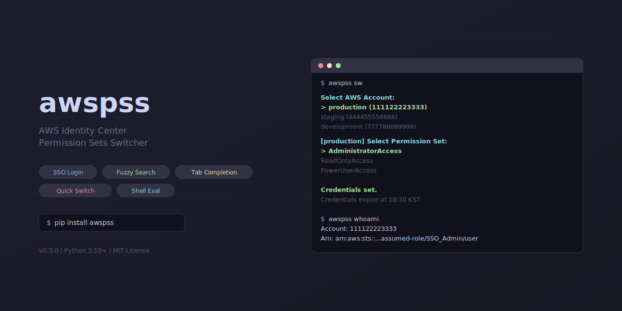 AWS Identity Center Permission Sets Switcher - Interactive SSO login & credential management CLI