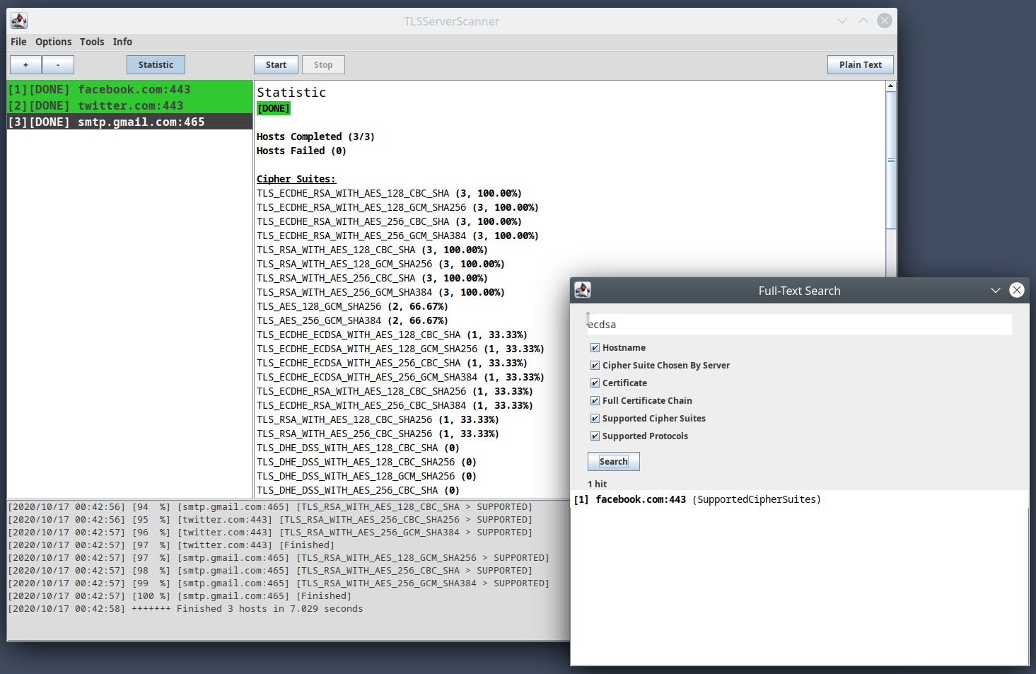 Scan TLS servers to get information about the supported TLS techniques.