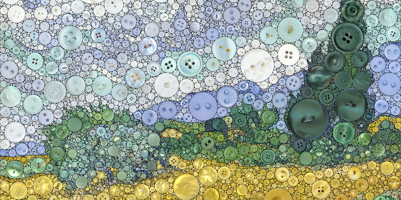 Reproducing images with mosaics of circle-packed buttons.