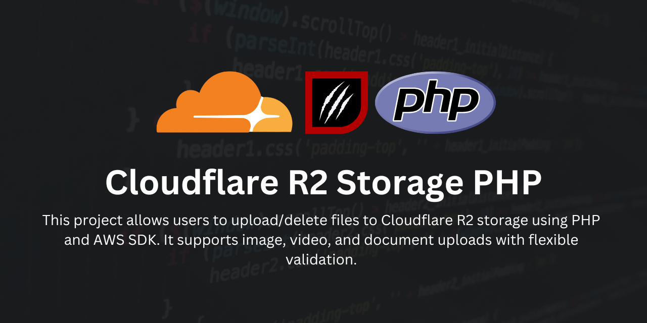 This project allows users to upload/delete files to Cloudflare R2 storage using PHP and AWS SDK. It supports image, video, and document uploads with flexible validation.