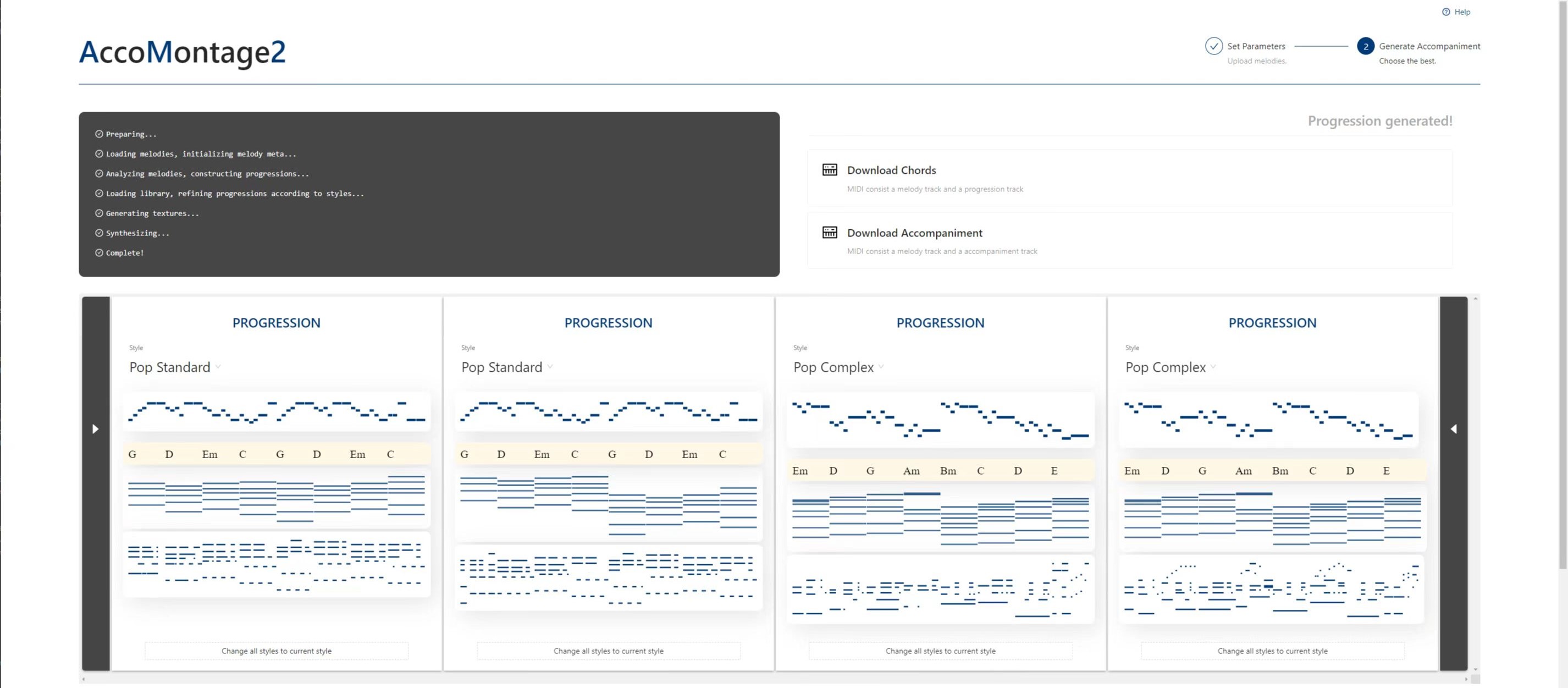 Chord and accompaniment generator, pure python package that generate chord progression and accompaniment according to given melodies. Code for paper AccoMontage2: A Complete Harmonization and Accompaniment Arrangement System.