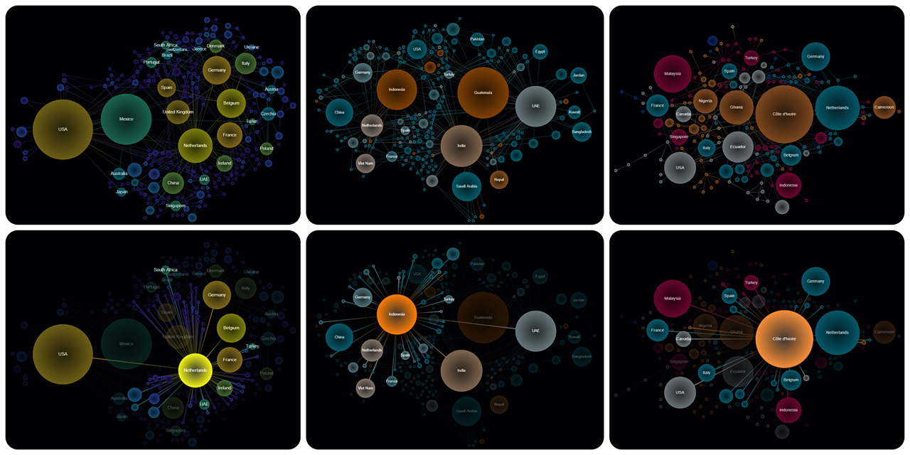 Python script that visualizes international commodity trade networks quickly and beautifully