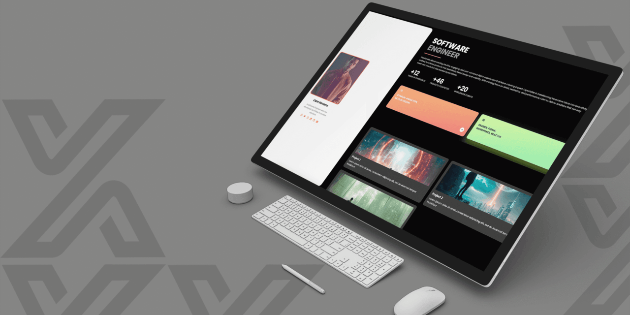 Orion Portfolio, modern website • Built with HTML, CSS, and JavaScript • Single page, Responsive design, interactive tab sections, mouse-tracking tilt effects, slide navigation, and much more.