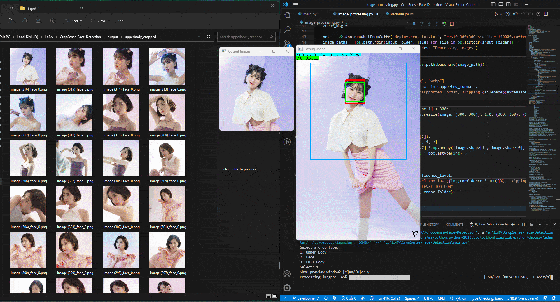 CropSense - Face Detection simplifies image processing by automatically detecting faces in pictures using OpenCV, allowing you to effortlessly crop and resize the faces to your desired output.