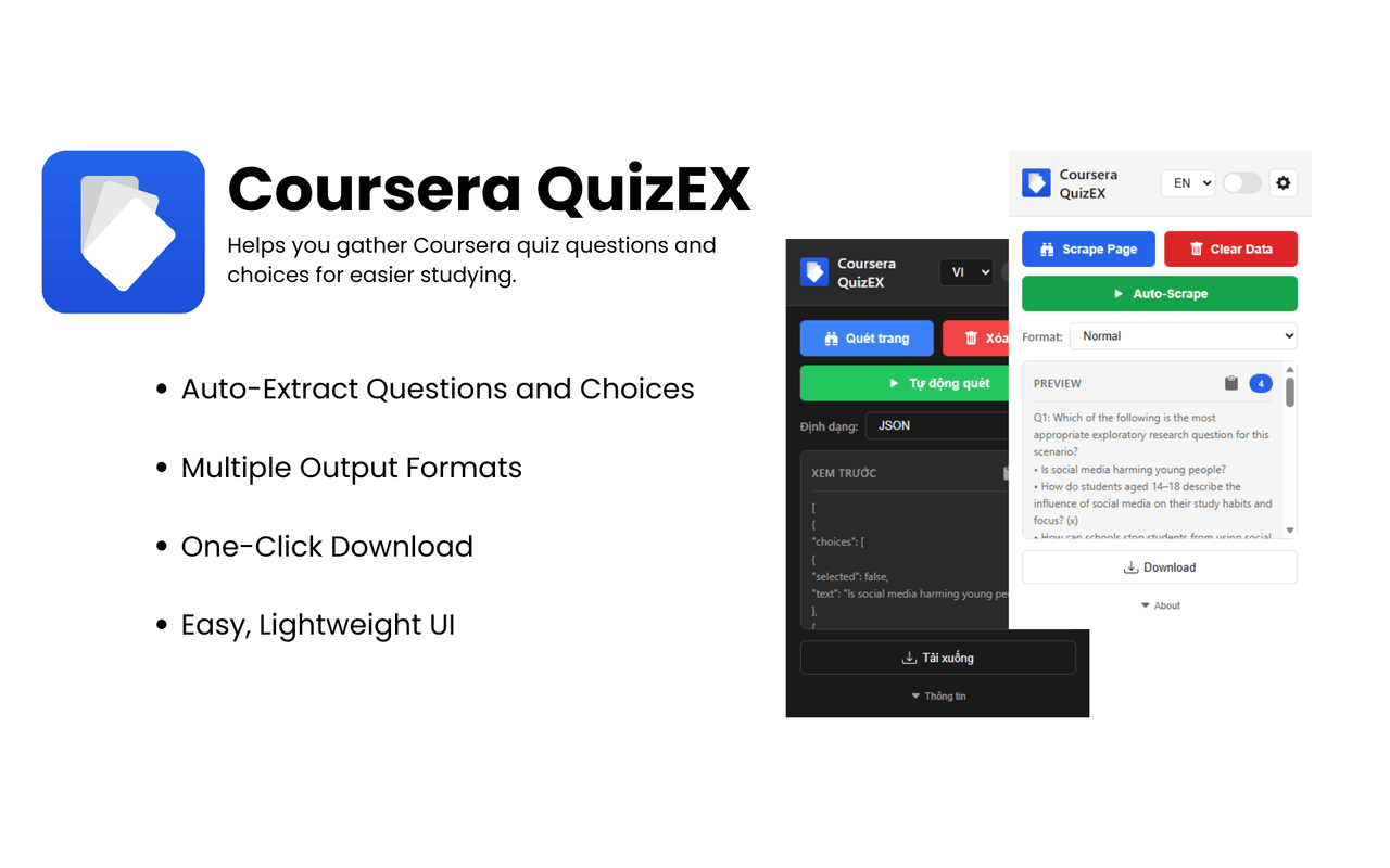 Browser extension to helps you gather Coursera quiz questions and choices for easier studying.