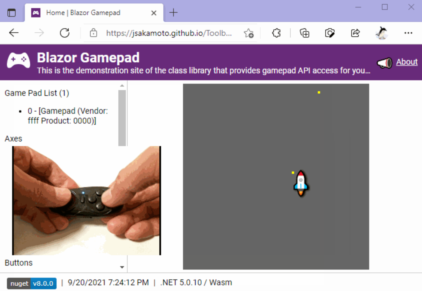 A JavaScript library that lets you handle, configure, and use gamepads and controllers on a browser, using the Gamepad API