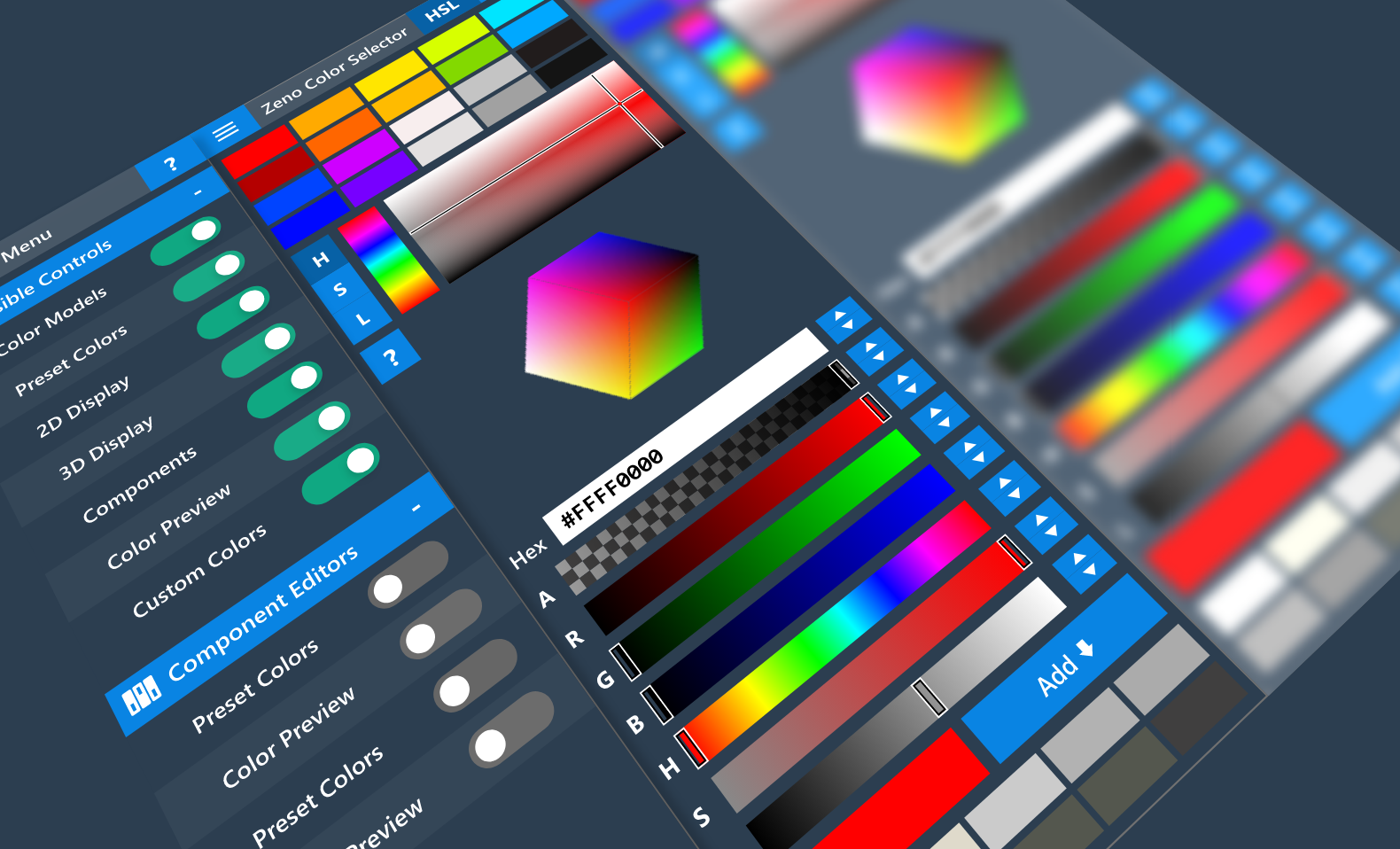 Extensible and compact color selector implemented in C# with WPF. Works as both standalone (with test application) and as an imported Control.
