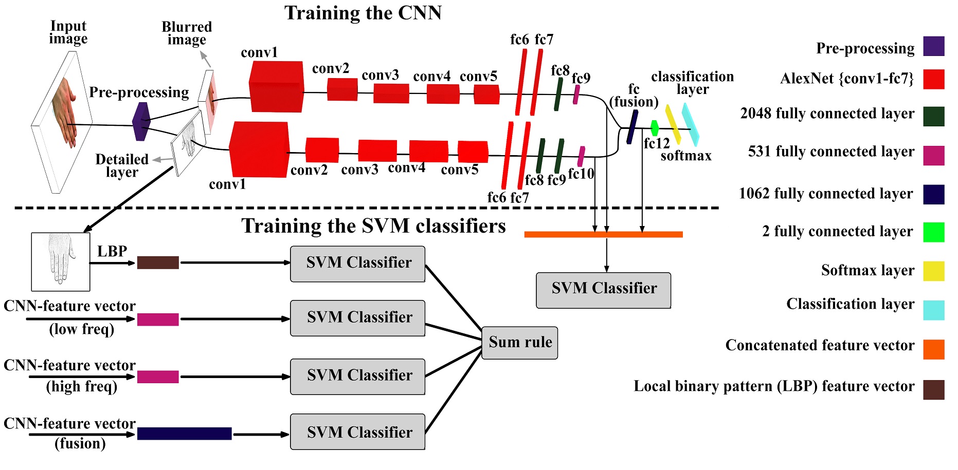 Two-stream CNN for gender classification and biometric identification using a dataset of 11K hand images.