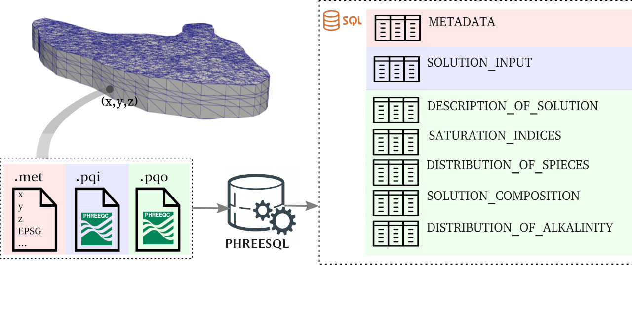 PHREESQL is a toolkit for efficiently storing the huge amount of data from geochemical speciation simulations run by PHREEQC in an SQL database. It includes both a C++ library, namely PHREESQLib, and a command-line interface, namely PHREESQLexe.