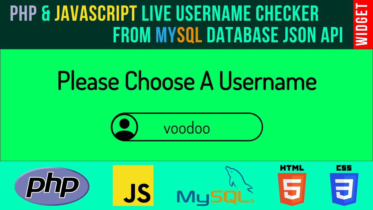 It's a Live Username Checker From a real MySQL database using PHP and JavaScript, you can check that username is available to submit or exists in your database, I show you how to create a PHP and MySQL JSON API to checking username input field data with the usernames list in your database.