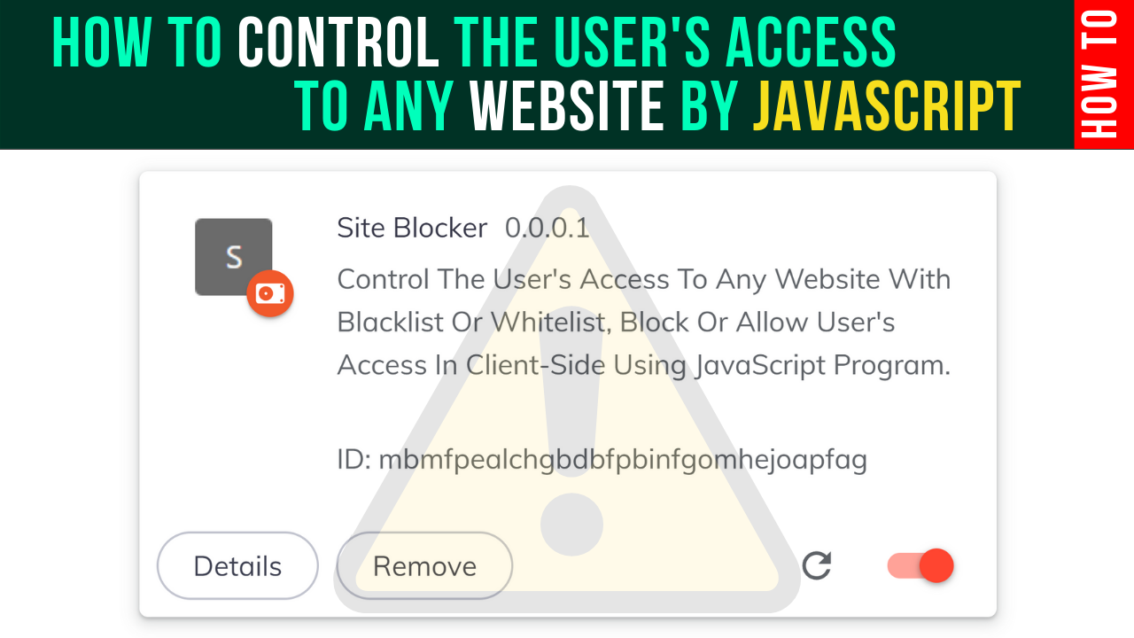 Site Blocker Chrome Extension, By that extension, You Can Control The User's Access To Any Website With Blacklist Or Whitelist and Block Or Allow User Access On the Client-Side Using Vanilla JavaScript then display the access denied error You can block any Domain or IP you want.