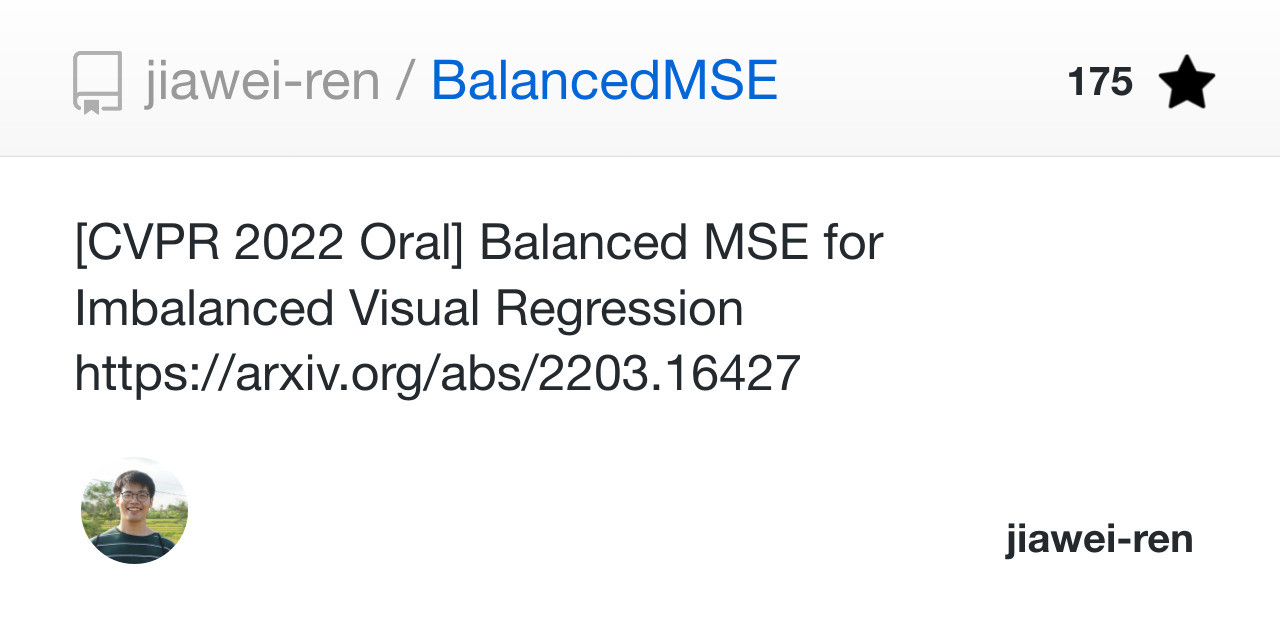 [CVPR 2022 Oral] Balanced MSE for Imbalanced Visual Regression https://arxiv.org/abs/2203.16427