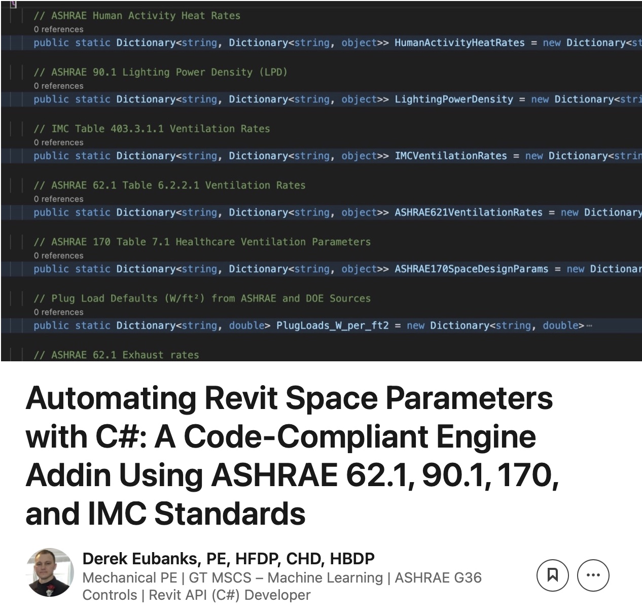 SpacePopulator is a C# Revit API add-in that automates the population of critical space parameters based on ASHRAE and IMC standards. Built for MEP engineers and BIM professionals, it classifies Revit Spaces by type and assigns code-compliant values to all space properties.