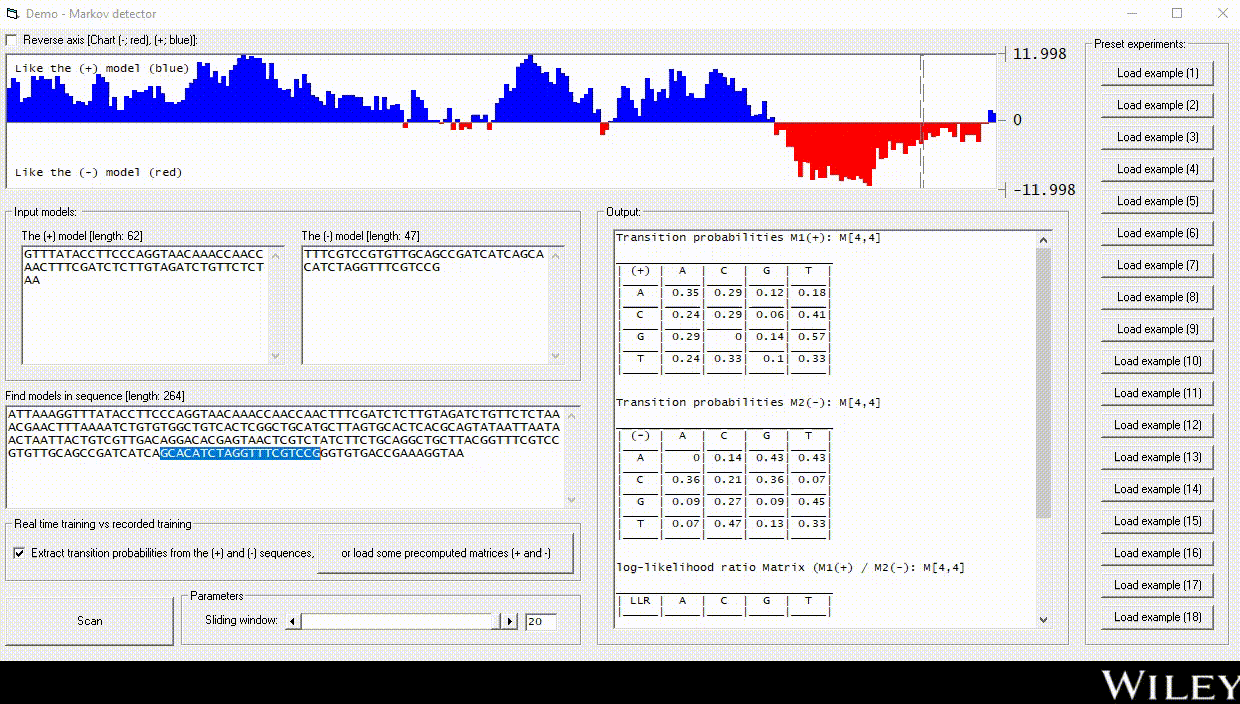 The current VB6 application is a detector that uses observation sequences to construct the transition matrices for two models, which are merged into a single log-likelihood matrix (LLM). A scanner can use this LLM to search for regions of interest inside a longer sequence called z (the target).