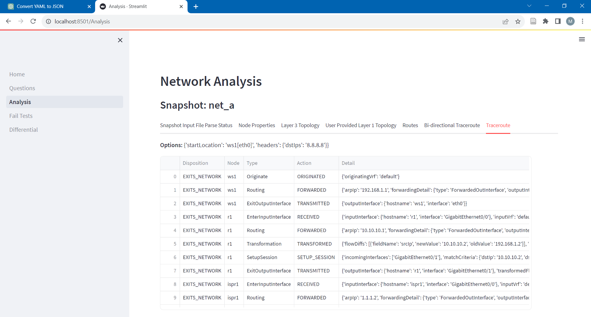 Bat-Q is an app that lets you run various network analysis queries using Batfish.