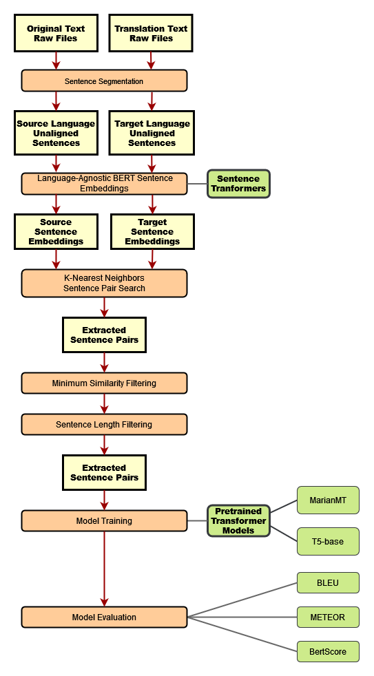 Example application for the task of fine-tuning pretrained machine translation models on highly domain-specific, self-extracted translated sentences