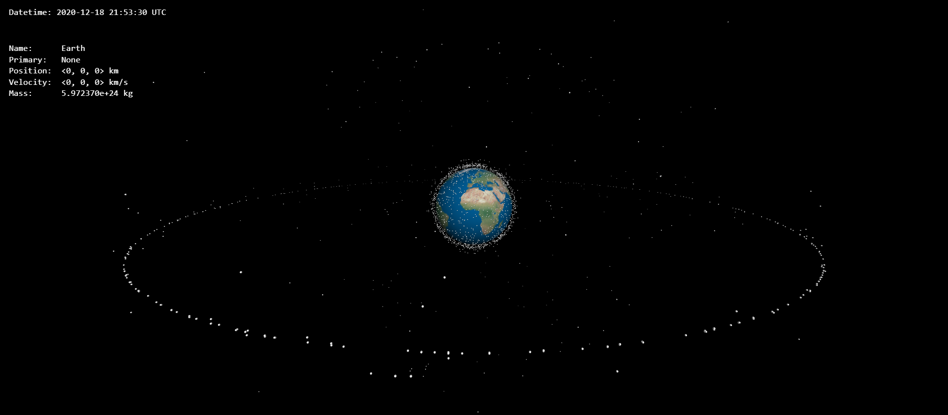 This project allows the user to simulate the trajectories of objects in space inside of a browser window using fundamental astrodynamics calculations.