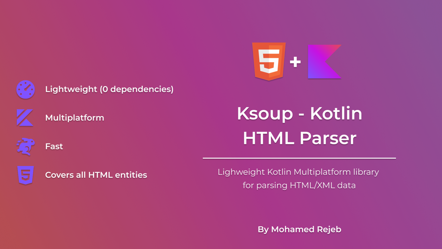 Ksoup is a lightweight Kotlin Multiplatform library for parsing HTML, extracting HTML tags, attributes, and text, and encoding and decoding HTML entities.