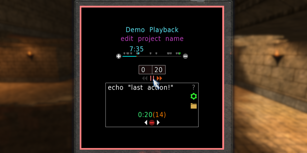 An in-game menu for scheduling actions during playback of Cube 2 Sauerbraten demos.