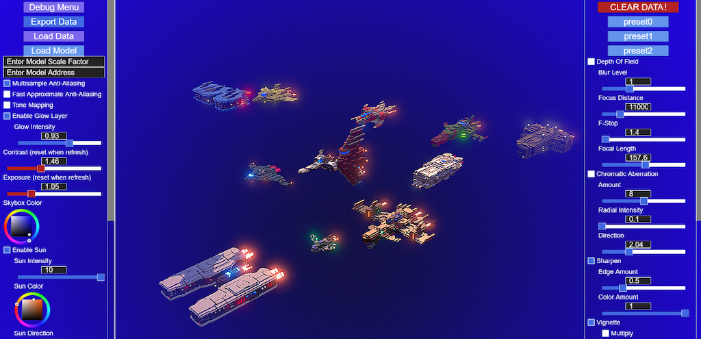Full control of post effects adjustments in Babylon.js. Support real-time post effect adjustments, mesh import, and post effect data sharing