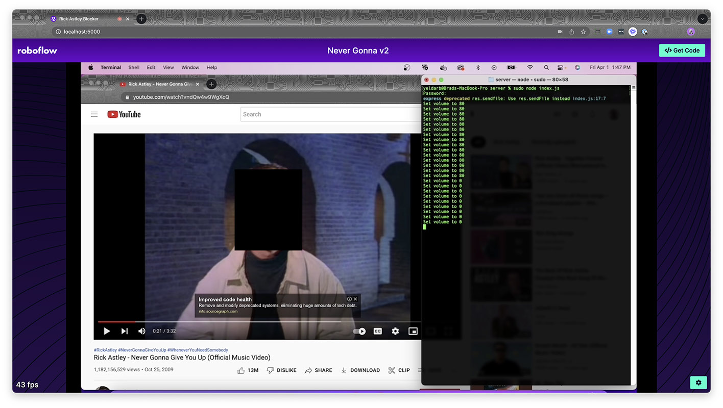 Audio visual mitigation of Rickrolls using computer vision.