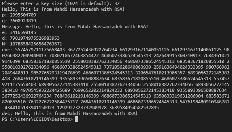 The RSA asymmetric encryption algorithm implemented in python from scratch.