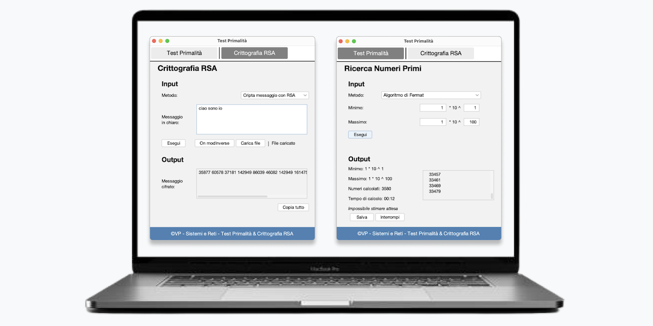 Soluzione software in Java che genera e salva su file i numeri primi con algoritmo di Fermat e algoritmo di crittografia RSA