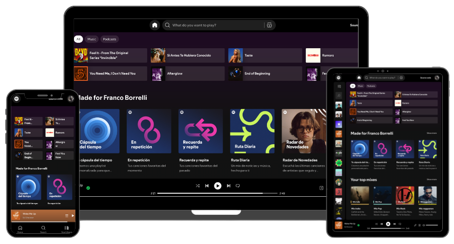 A complete Spotify clone built with Typescript, React, React Redux, Spotify Web API, and Spotify Playback SDK. This web client replicates the core functionalities of Spotify, including music playback, search, playlists, and user authentication, delivering a seamless user experience.