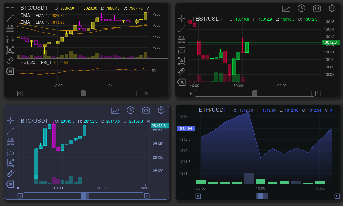 体积小,接入简单,API全面的K线,An Easy-to-Use and Perfect K-Line Library ,CandleStick,Kchart,CandleLine,Kline(虚拟币,股票,基金,外汇),指标线(MACD,WR,KDJ,RSI,EMA),ChartView,可以配置出任何交易所的K线样式