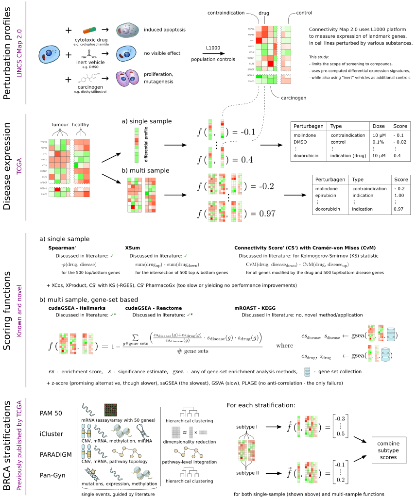 Multi-omics disease sub-type specific drug repositioning aided with expression signatures from ConnectivityMap