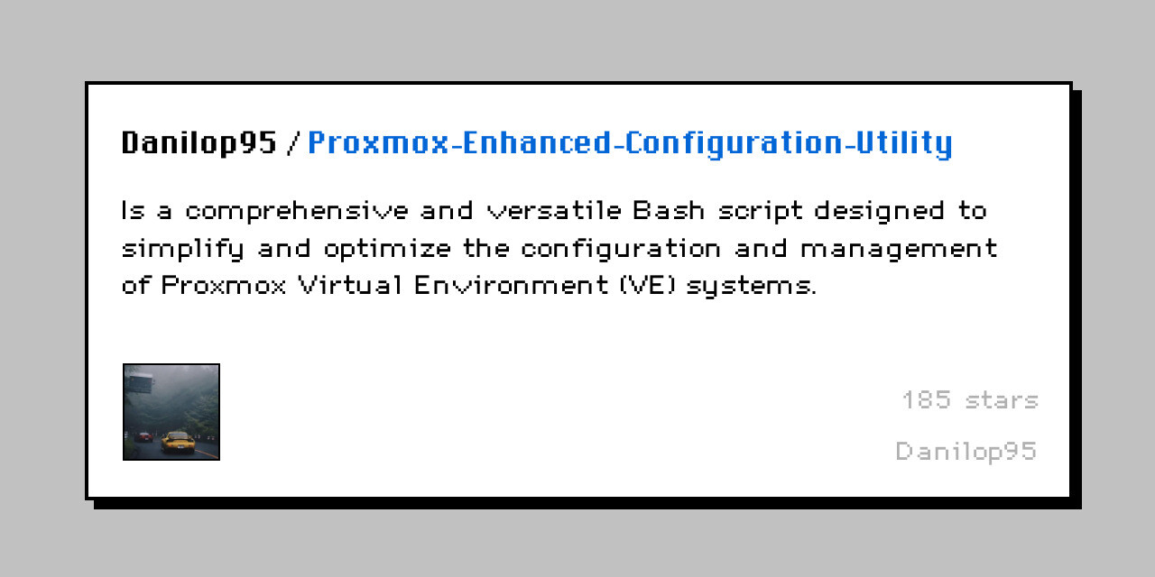 Is a comprehensive and versatile Bash script designed to simplify and optimize the configuration and management of Proxmox Virtual Environment (VE) systems.