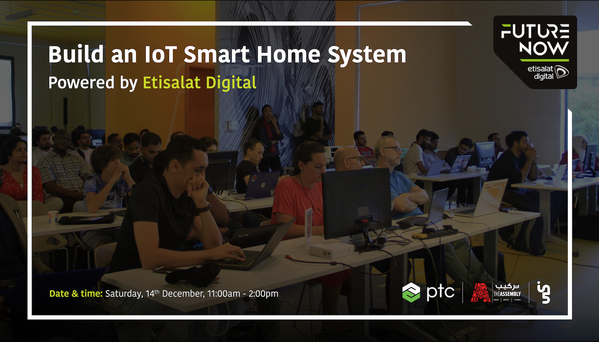 Dec 14th @ in5 - Hands-on Internet Of Things workshop with Etisalat Digital & PTC. At this session, we’ll create a modular solution using the Etisalat IoT Platform to automate home controls like lights, locks and cameras over the internet. We’ll show you how to set up hardware attached to remote edge devices to be monitored and controlled over t…
