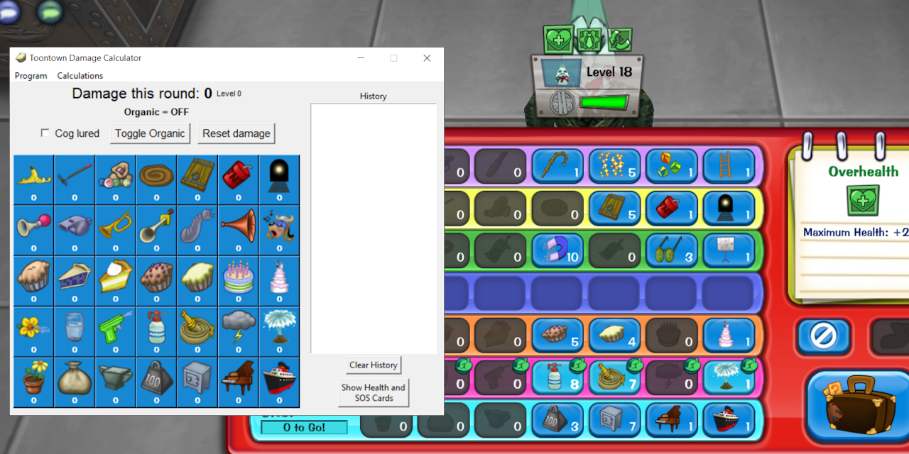 Gag damage calculator for Toontown Rewritten