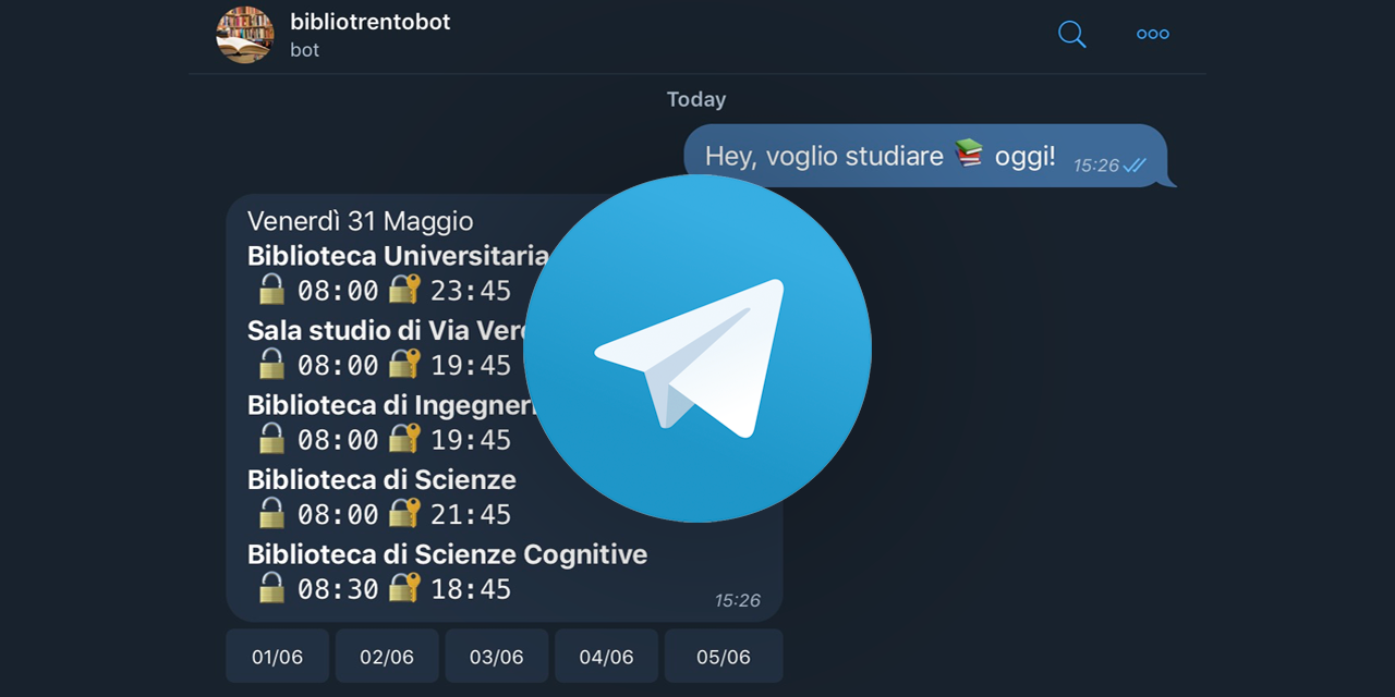 Telegram bot that sends you the opening and closing hours of the libraries and study areas of Trento