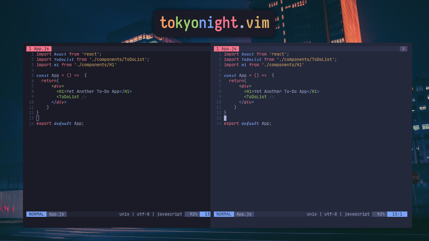 A clean, dark vim colorscheme that celebrates the lights of downtown Tokyo at night, based on a VSCode theme by @enkia with the same name [Archived because I'm no longer using this]