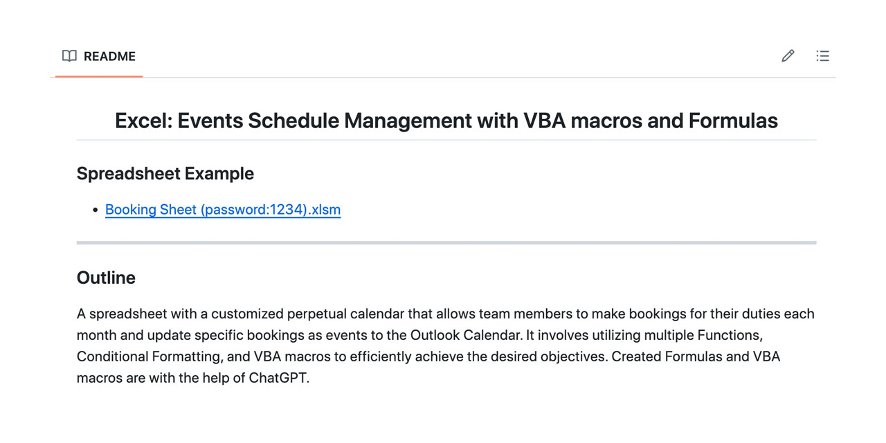 Excel: Events Schedule Management with VBA macros and Formulas