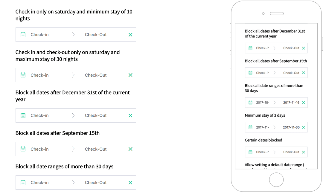 A VueJS v2 responsive date range picker. Displays the number of nights selected and allow several useful options like custom check-in/check-out rules, localization support and more.