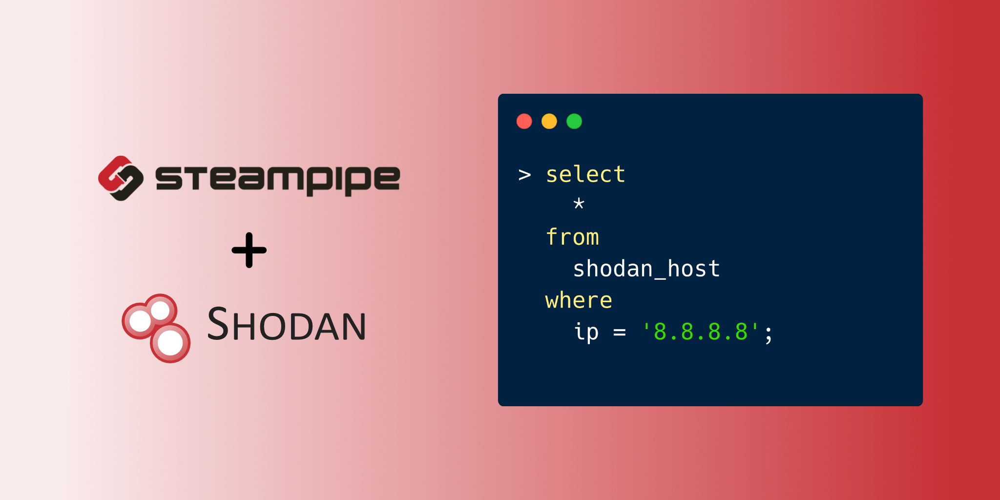 Use SQL to instantly query host, DNS and exploit information using Shodan. Open source CLI. No DB required.