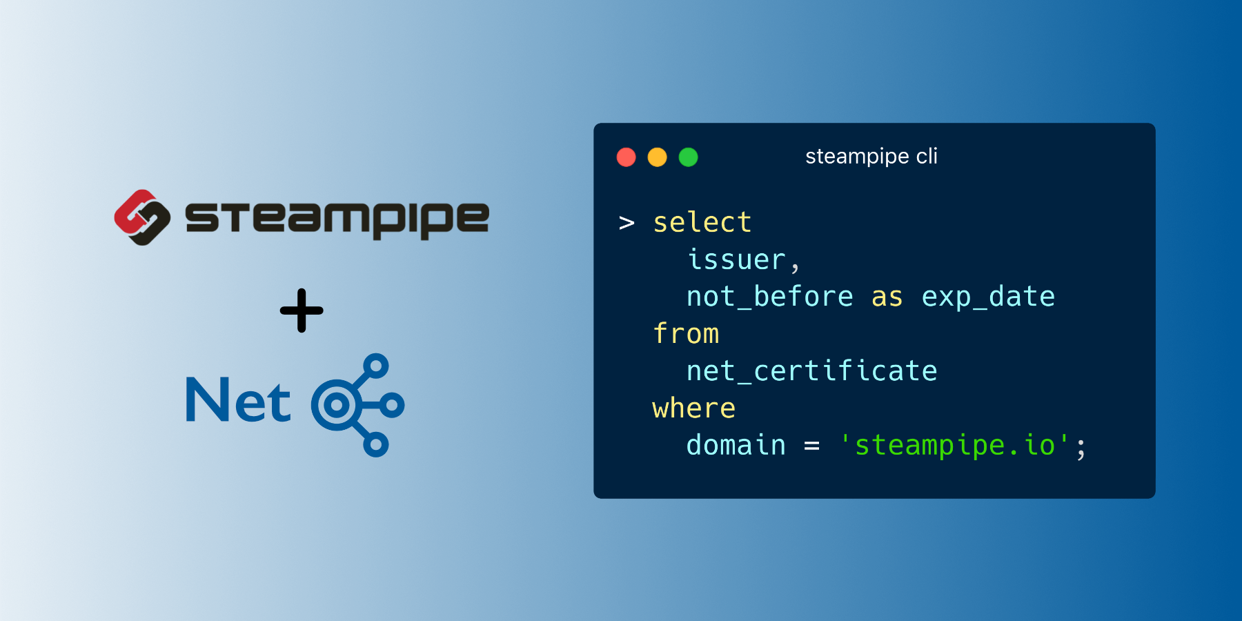 Use SQL to instantly query DNS records, certificates and other network information. Open source CLI. No DB required.